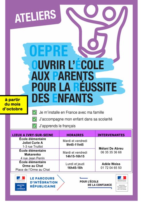 Ateliers OEPRE : Ouvrir l'École aux Parents pour la Réussite des Enfants